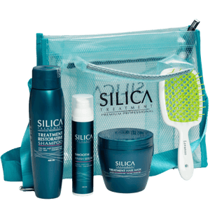ערכת מוצרים לשיקום השיער לאחר החלקה SILICA שמפו+מסכה+סרום+מברשת סיליקה